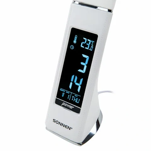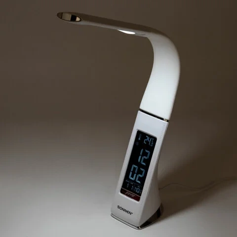 Настольная лампа-светильник SONNEN SM-01W на подставке, LCD-экран, СВЕТОДИОДНАЯ, 5 Вт, белый, 238233