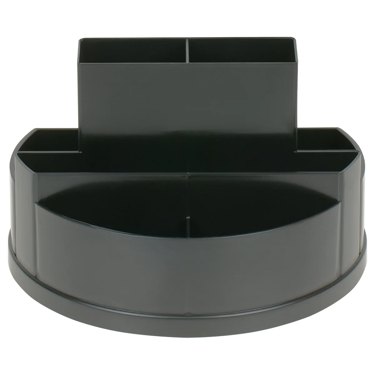 Настольная подставка 'СТАММ' серии 'Сити' предназначена для хранения канцелярских принадлежностей. Вместительная и устойчивая подставка имеет 10 отделений разной высоты и формы. Изделие высотой 10,2 см и диаметром основания 15,5 см изготовлено из качественного пластика. Свободно вращается на 360 градусов. Поставляется без наполнения. Цвет изделия - черный.
