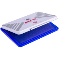 Применяется для штампов и печатей на ручной оснастке. Штемпельная подушка заправлена синими чернилами на водной основе. Крышка металлического корпуса коробочки закрывается плотно, препятствуя испарению влаги. Размеры подушки - 110х70 мм.