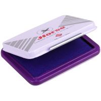 Применяется для штампов и печатей на ручной оснастке. Штемпельная подушка заправлена фиолетовыми чернилами на водной основе. Крышка металлического корпуса коробочки закрывается плотно, препятствуя испарению влаги. Размеры подушки - 70х45 мм.