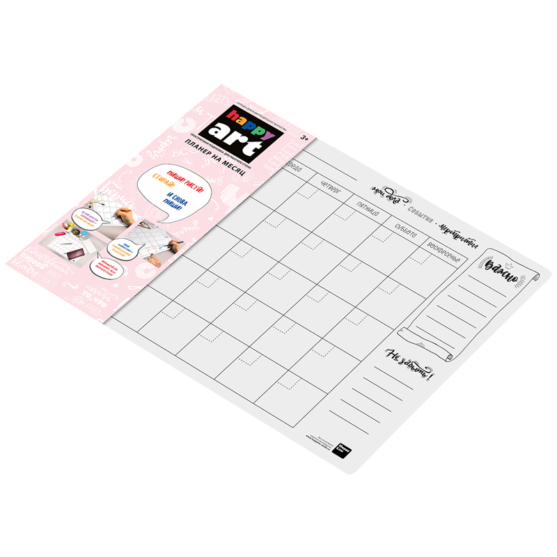 Планер на месяц. Вписывайте месяц, даты. Все важные дела, чтобы ничего не забыть. И конечно, делайте заметки и напоминалки.