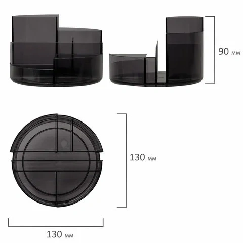 Подставка-органайзер BRAUBERG ROUND, 6 отделений, 130х130х90 мм, тонированная серая, 238101, ОР01