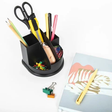 Подставка-органайзер BRAUBERG ROUND, 6 отделений, 130х130х90 мм, черная, 238100, ОР05