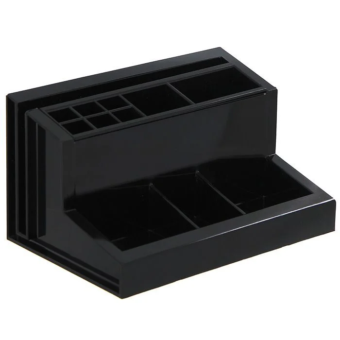 Подставка Erich Krause Лидер - незаменимый атрибут рабочего стола. Подставка выполнена из высококачественного черного пластика, содержит 11 отделений для пишущих принадлежностей, линеек, ластиков, точилок и одно отделение для бумаг.