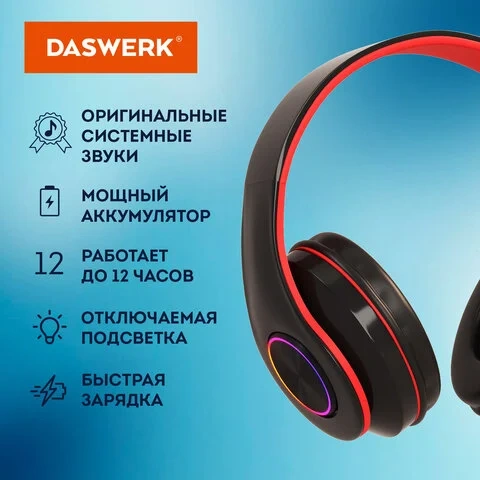 Наушники беспроводные большие светящиеся накладные, красные DASWERK B-39, 513807