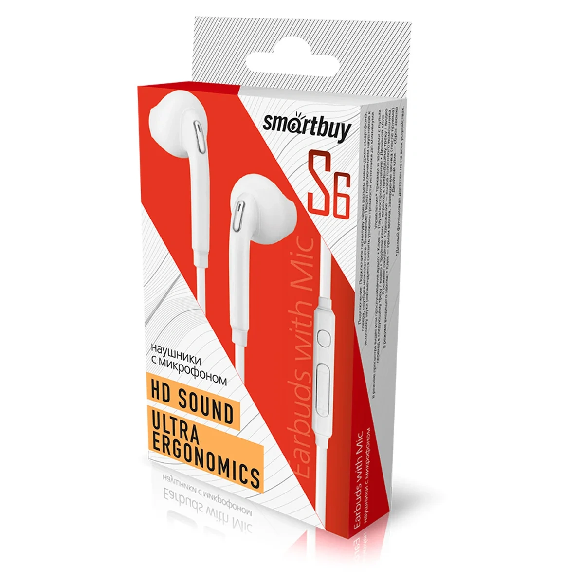 Наушники-вкладыши с микрофоном SmartBuy S6, 1,1м, белый