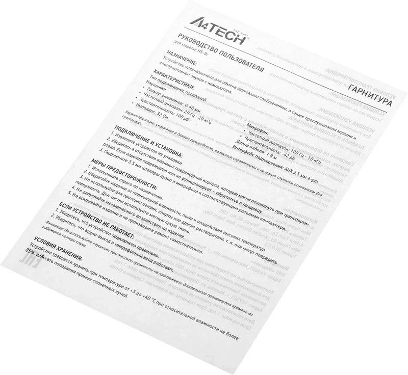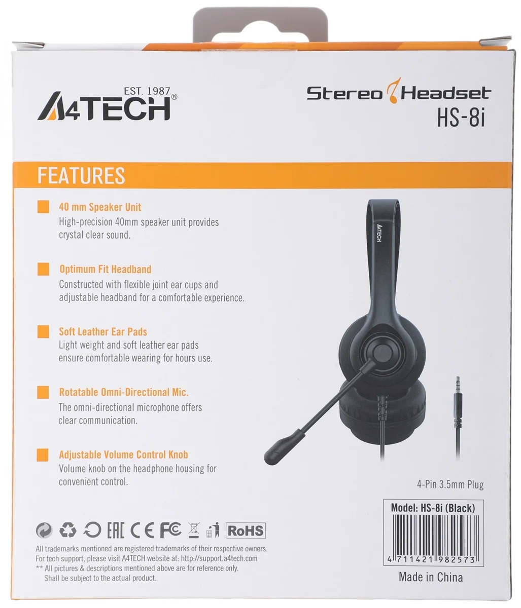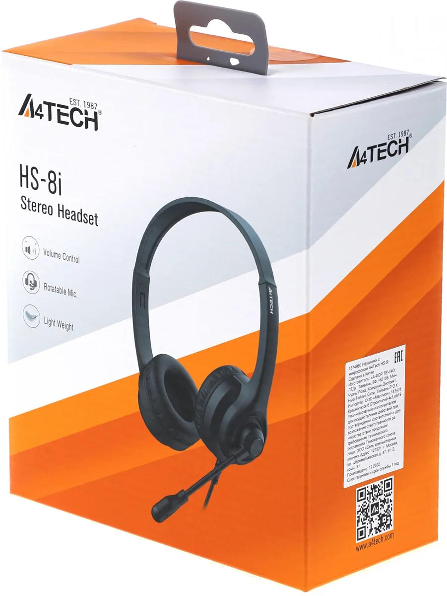 Наушники с микрофоном A4Tech HS-8i черный 1.8м накладные оголовье