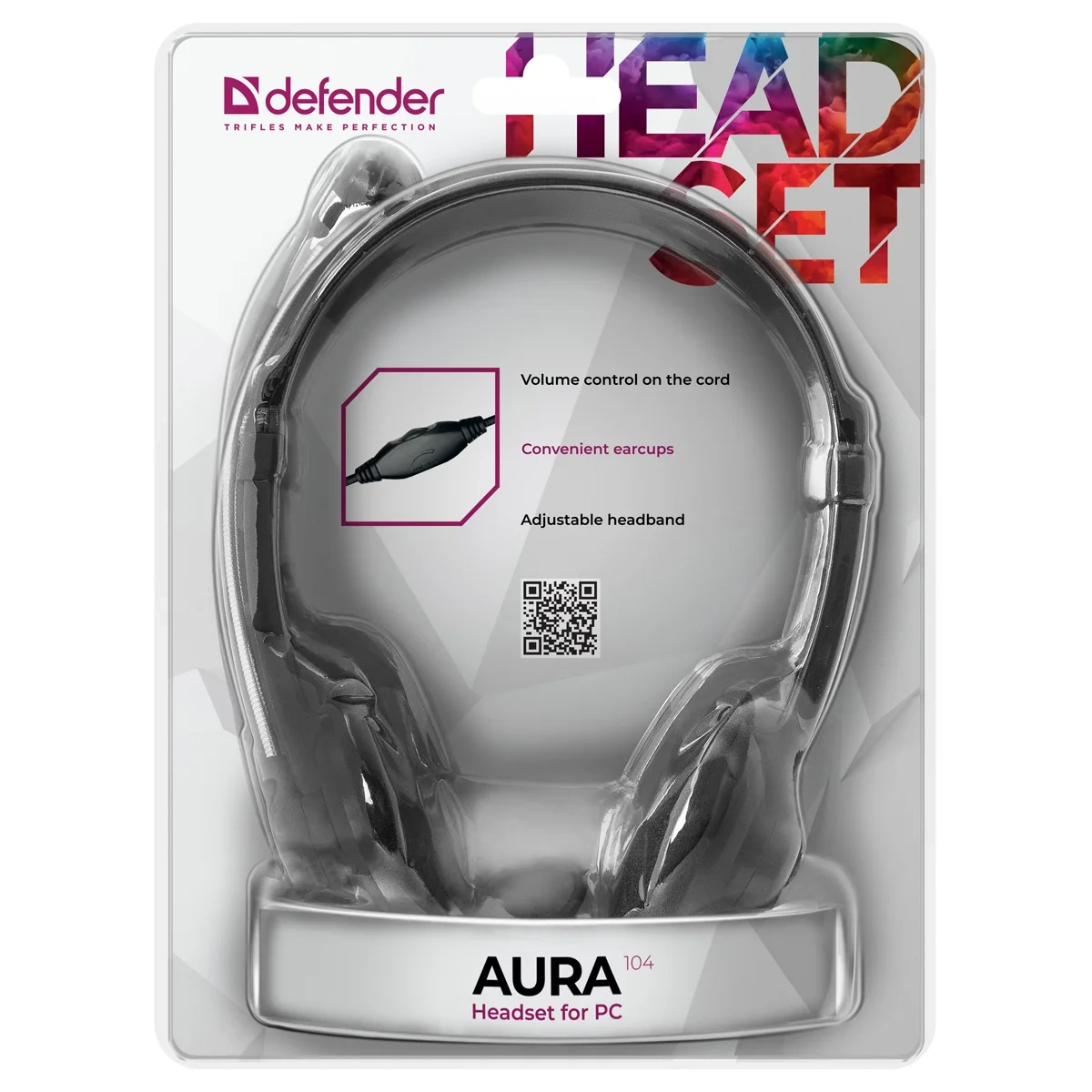 Наушники с микрофоном Defender 'Aura 104' (с регулятором громкости) 1,8м, черный