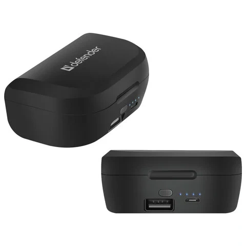 Наушники с микрофоном (гарнитура) DEFENDER TWINS 639, Bluetooth, беспроводные, черные, 63639