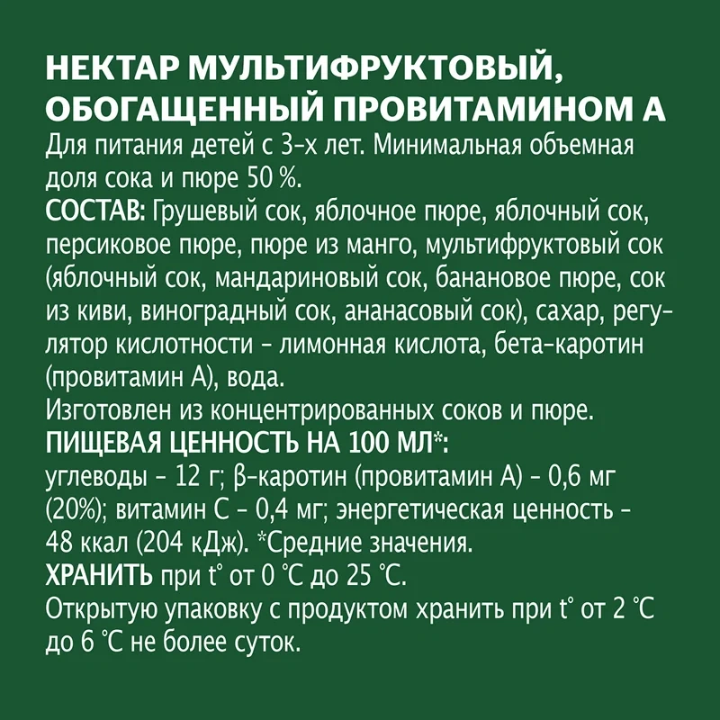 Нектар Добрый Мультифрукт 300 мл — обладает мягким, сбалансированным вкусом и содержит натуральную пользу, произведен из спелых и сочных фруктов, источник провитамина А, также содержит витамин С и антиоксиданты. Без консервантов и красителей, он наполнен пользой фруктов и вашей добротой. Удобная упаковка позволяет легко хранить и транспортировать продукт. Благодаря объему 300 мл идеально подойдет для динамичного ритма дня— в дороге, на работе или во время активного отдыха. Этот напиток станет отличным выбором для тех, кто ценит натуральные соки и фруктовые нектары высокого качества.