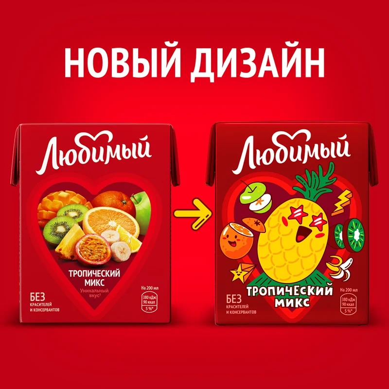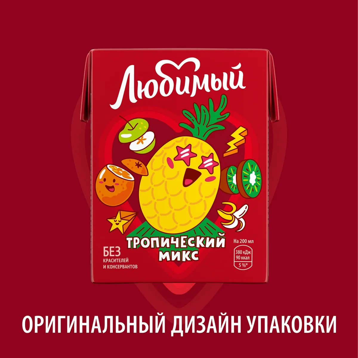 Лето - любимая пора для вашей семьи? Нотки экзотических фруктов в Любимый. Тропический микс перенесут вас в жаркий сезон, а пикантная свежесть арбуза погрузит в приятные воспоминания об уютной летней прохладе! Нотки экзотических фруктов и пикантная свежесть арбуза. Любимый. Тропический микс перенесет вас в жаркий летний сезон. Погрузитесь в приятные воспоминания об уютной летней прохладе! Любимый – один из лидеров сокового рынка России. Портфель бренда представляют нектары и соковые напитки на любой вкус высокого качества и по доступной цене. В его широкой ассортиментной линейке – уникальные вкусовые сочетания, такие же гармоничные, как и союз любящей пары! Продукция бренда бережно сохраняет вкус и аромат сочных спелых фруктов и ягод без использования искусственных красителей и консервантов.