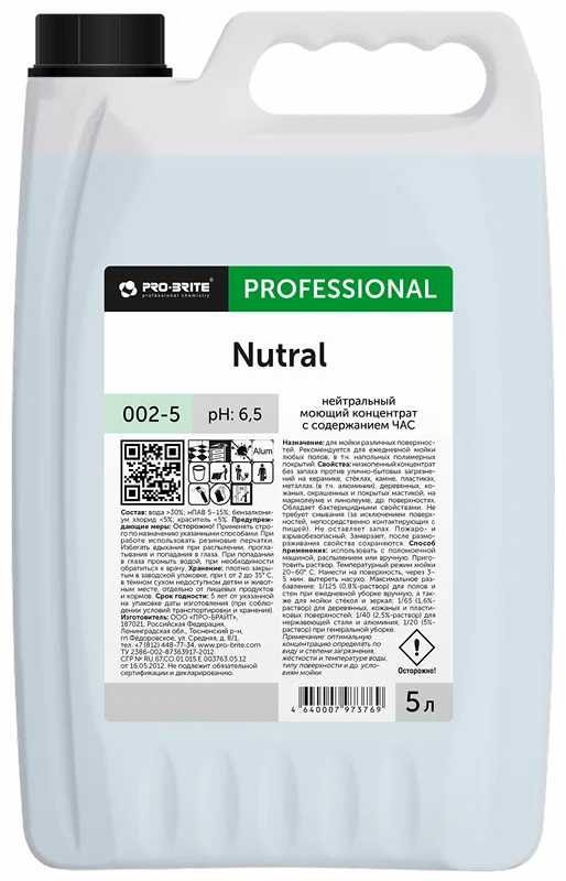 Нейтральный моющий концентрат Pro-Brite Nutral 5л, 002-5