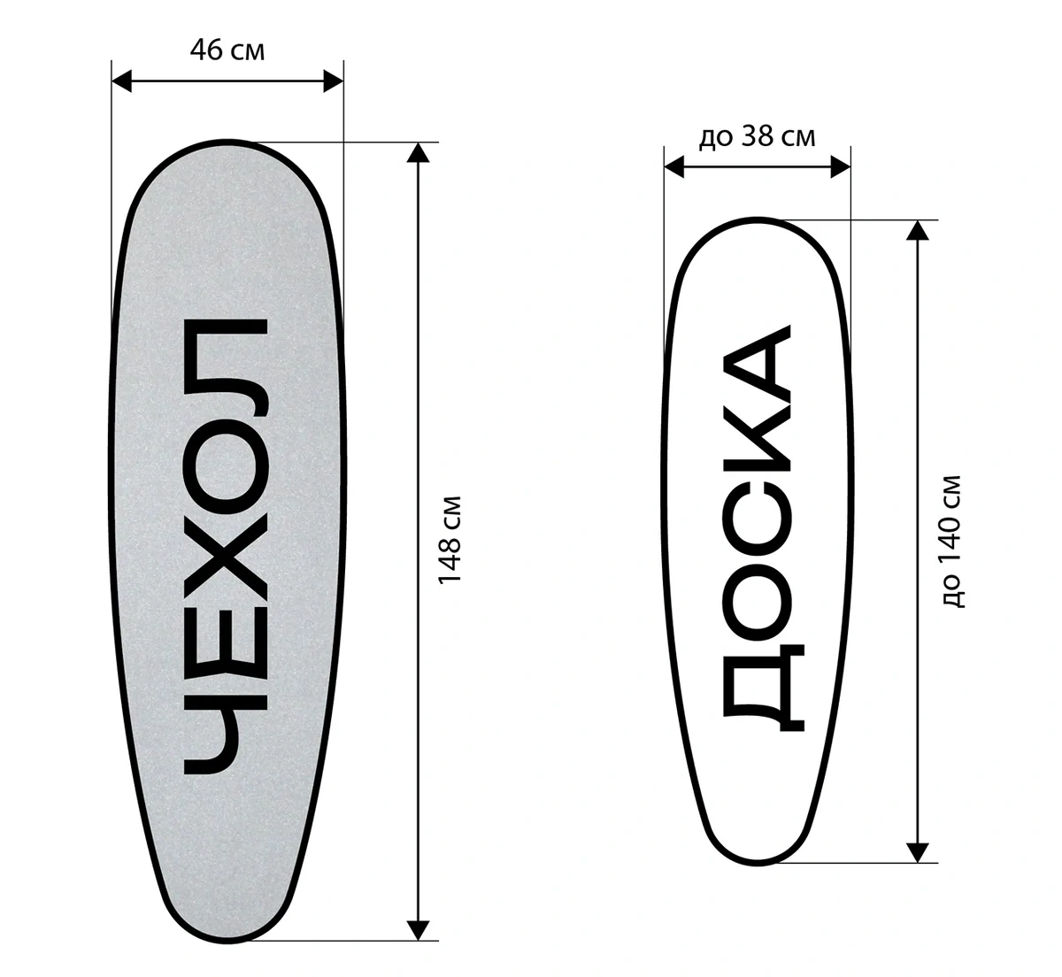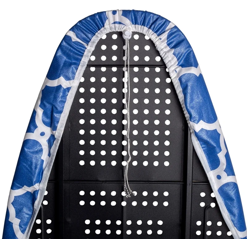 Крепление шнура облегчает фиксацию чехла, обеспечивая его всегда гладкое и натянутое состояние. Чехол подходит для гладильных досок с рабочей поверхностью, а срок его службы составляет 5 лет.