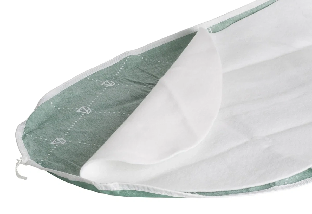Использована текстильная технология для улучшения потока пара и быстрого глажения. Специальный войлочный слой разработан для сухого покрытия и предотвращения скопления воды на поверхности. Верхний слой создан для плавного скольжения, что обеспечивает долговечность и комфорт при глажении.