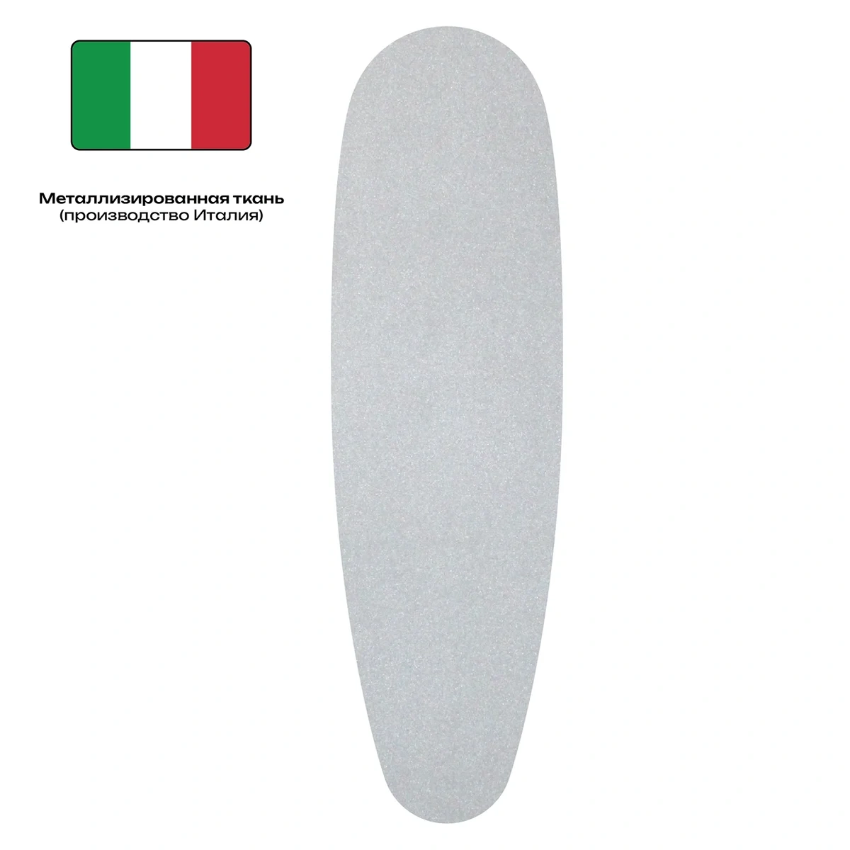 Изготовлен из металлизированного материала, который отражает высокую температуру, что способствует быстрому глажению. Материал: ткань, обладающая повышенными термо- и влаго-защитными, а также грязеустойчивыми свойствами.