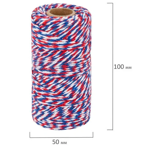 Нить хлопчатобумажная для прошивки документов, ТРИКОЛОР, диаметр 1,6 мм, длина 120 м, BRAUBERG, 7003