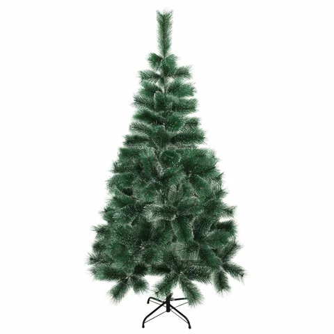 Ель искусственная Золотая Сказка Пушистая 150см, с инеем и шишками, зеленая