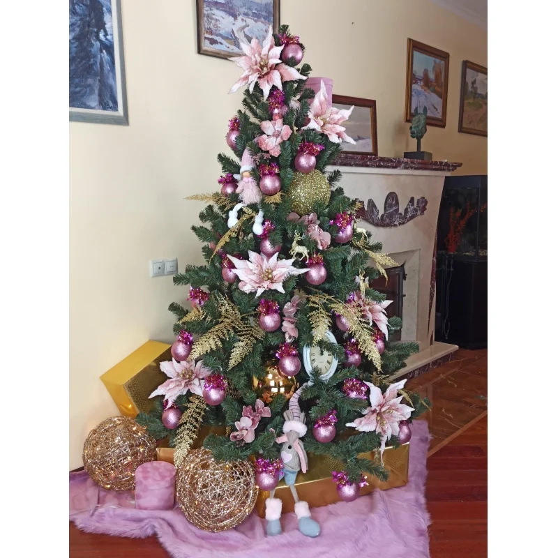 Ель искусственная Золотая Сказка Пышная 180см, с инеем и шишками, зеленая