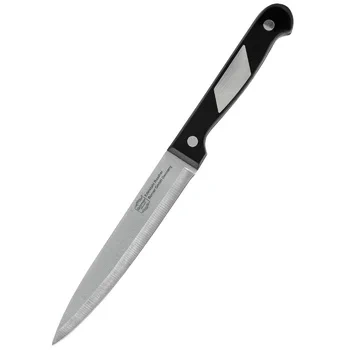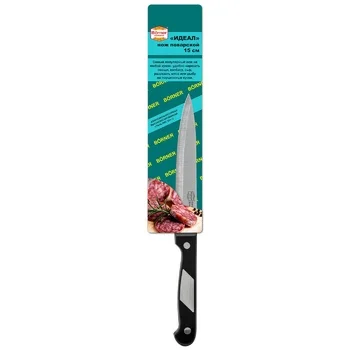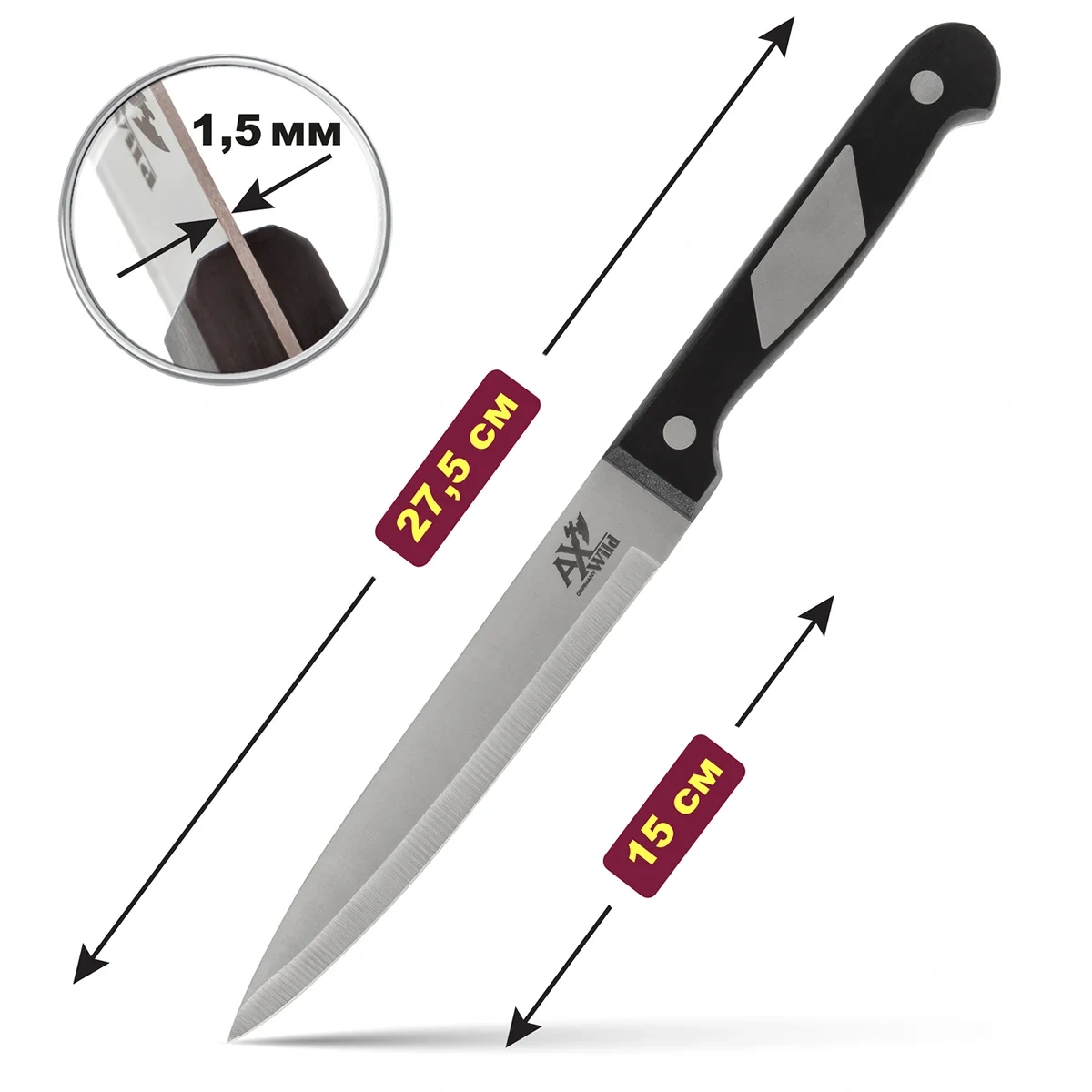 Нож поварской Axwild Ideal, 15 см используется для измельчения различных продуктов, таких как овощи, фрукты, зелень, грибы, а также подходит для нарезки колбасы и сыра, для разделывания курицы, мяса, рыбы. Даже при регулярном использовании не требуется его частая заточка. Для изготовления ножа была использована прочная и долговечная сталь. Лезвие имеет специальное покрытие, благодаря которому к нему при нарезке не прилипают продукты. Для обработки продуктов необходимо приложить минимальные усилия. Эргономичная рукоятка комфортно располагается в ладони, не выскальзывает, что обеспечивает безопасность в процессе работы с ним. Клинок отличается устойчивостью к коррозии, на нем не появляется царапин и деформации лезвия. Кухонный предмет имеет стильный дизайн и на протяжении всего периода эксплуатации сохраняет свой презентабельный внешний вид.