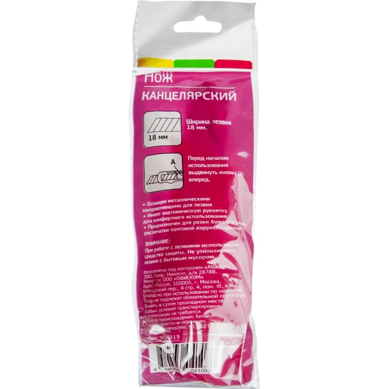 Нож канцелярский 18мм Attache с фиксатором и металлическими направляющими