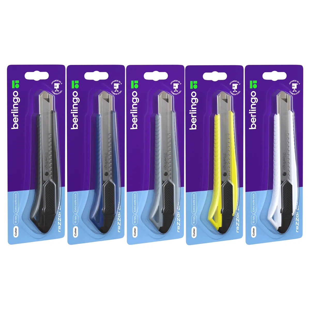 Нож канцелярский 18мм Berlingo 'Razzor 200', auto-lock, металл. направл., ассорти, европодвес