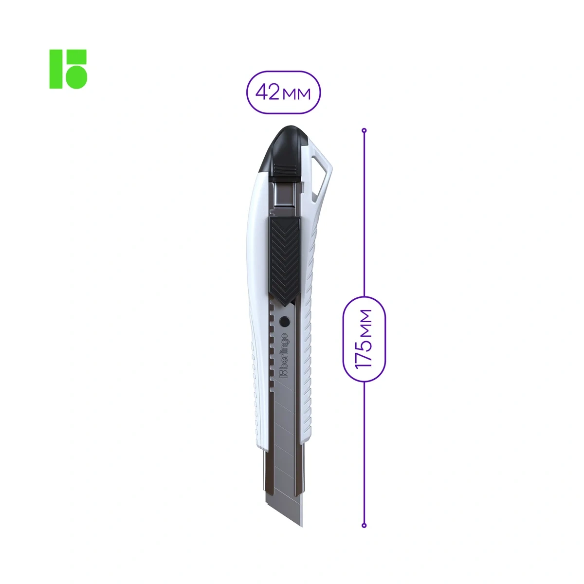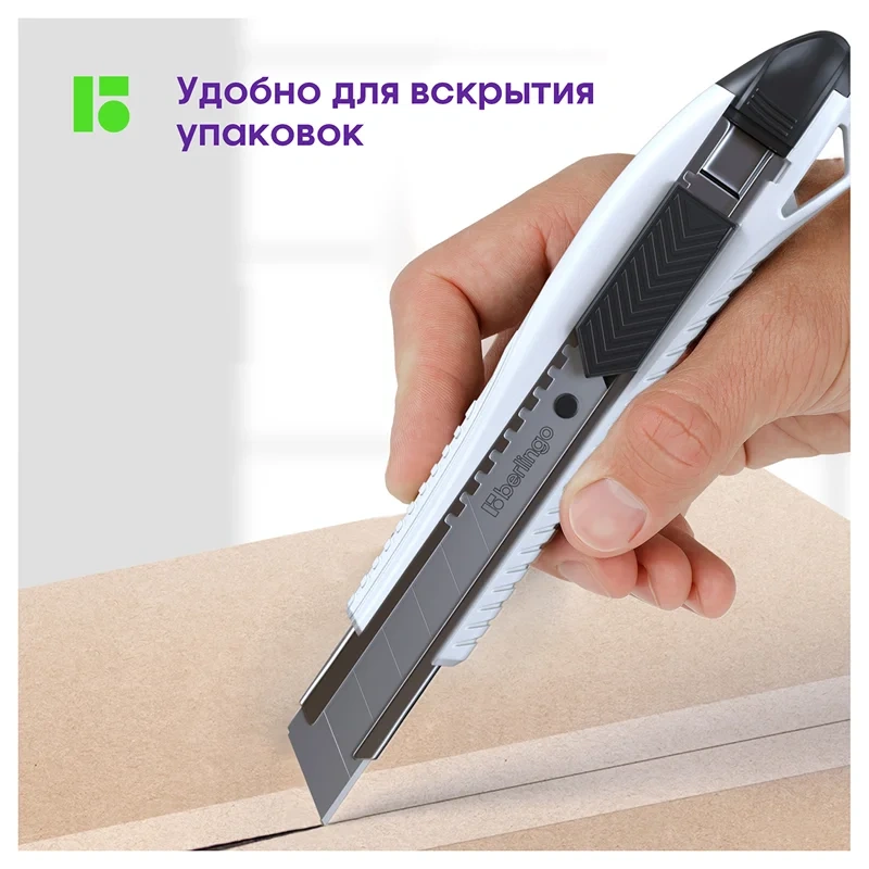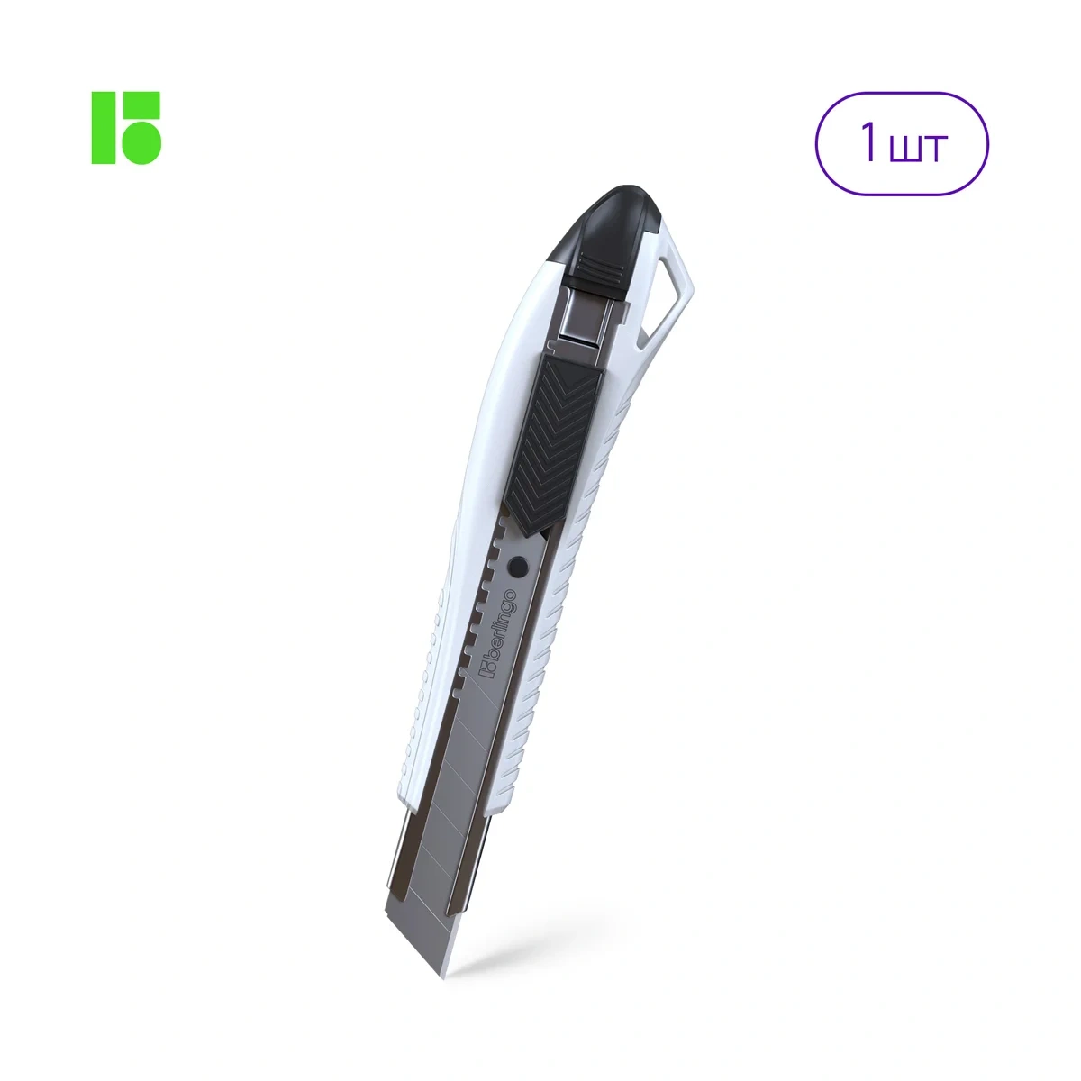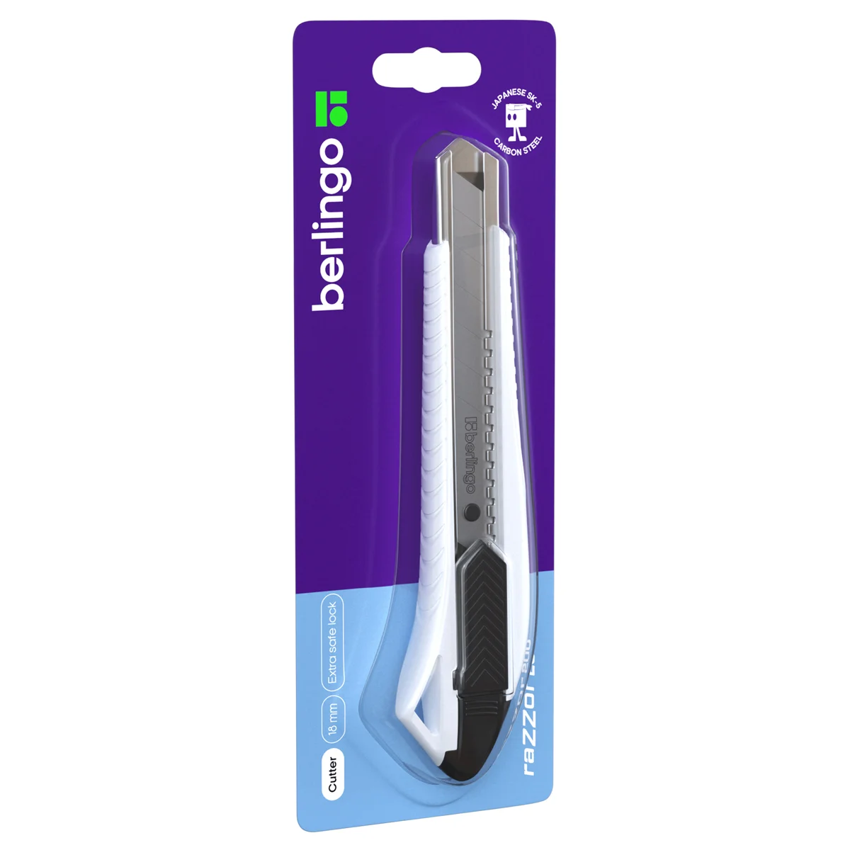 Нож канцелярский 18мм Berlingo 'Razzor 200', auto-lock, металл. направл., белый, европодвес