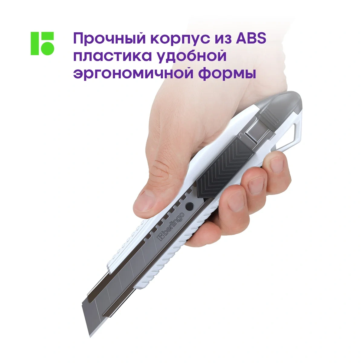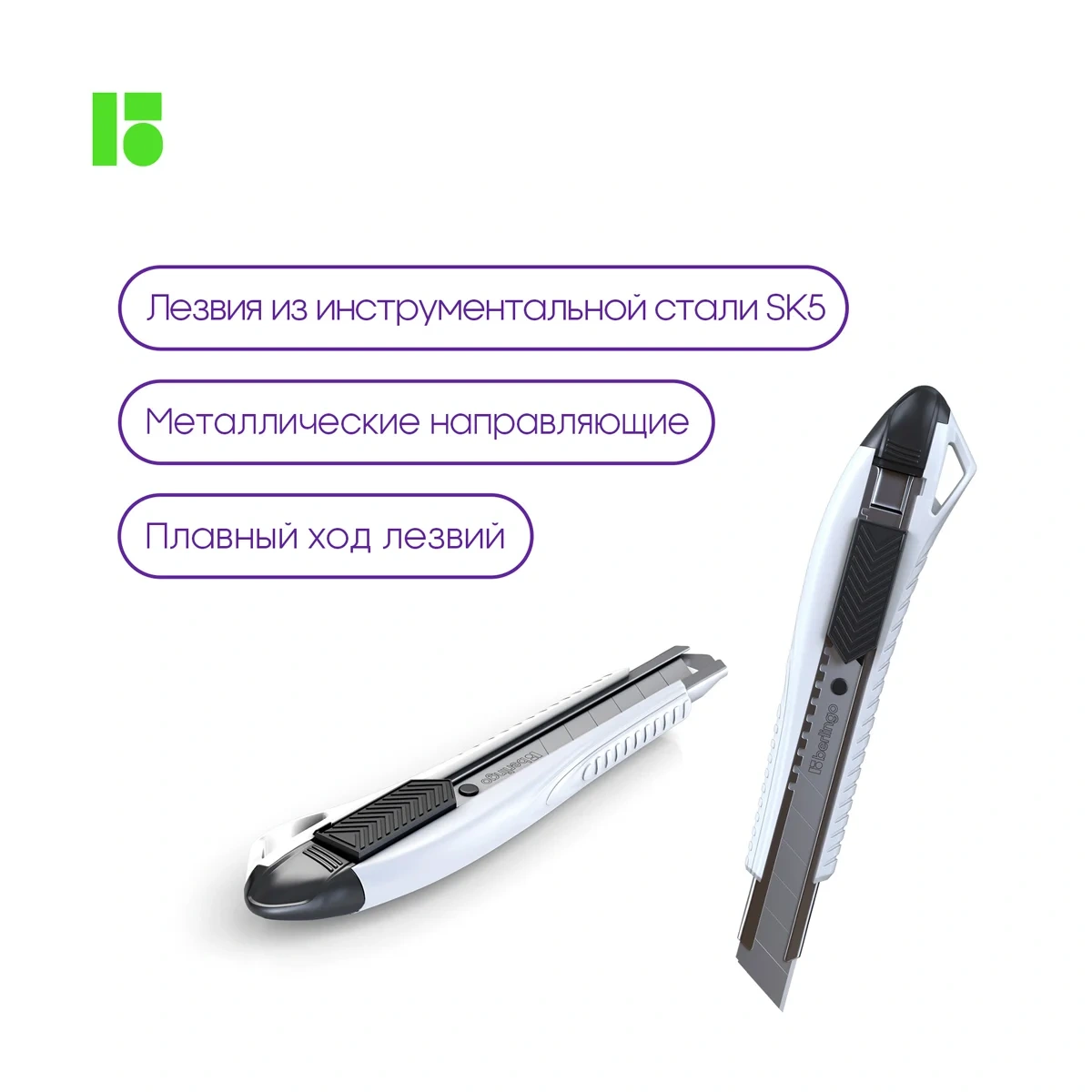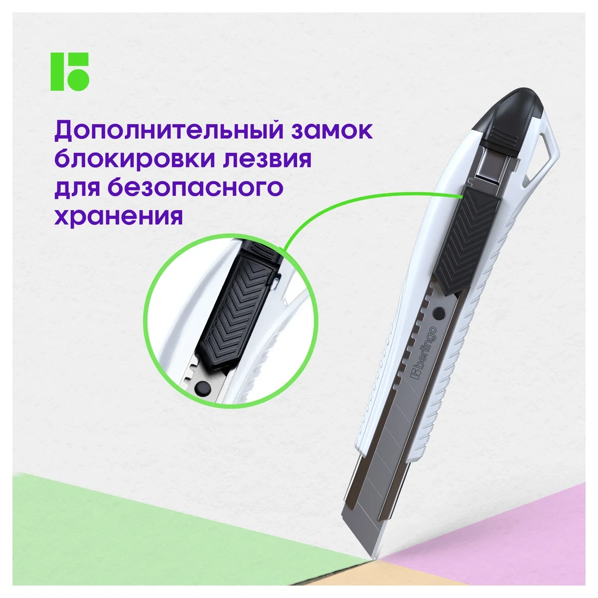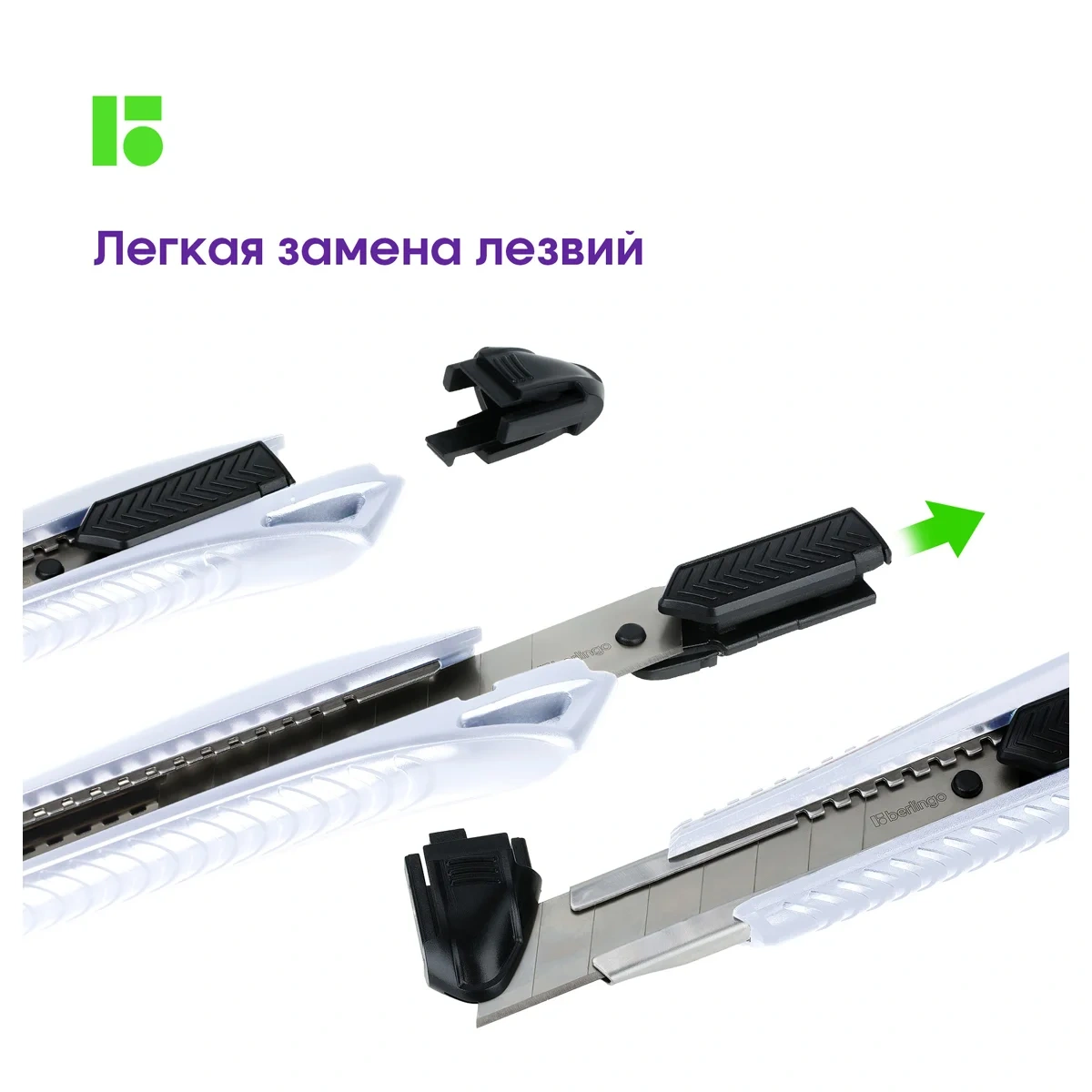 Нож канцелярский 18мм Berlingo 'Razzor 200', auto-lock, металл. направл., белый, европодвес