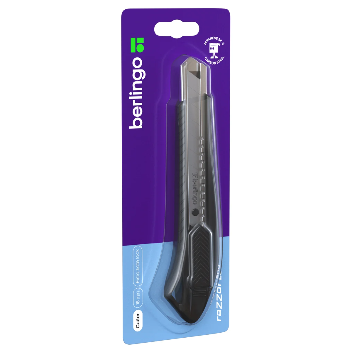 Нож канцелярский 18мм Berlingo 'Razzor 200', auto-lock, металл. направл., черный, европодвес