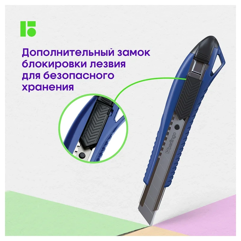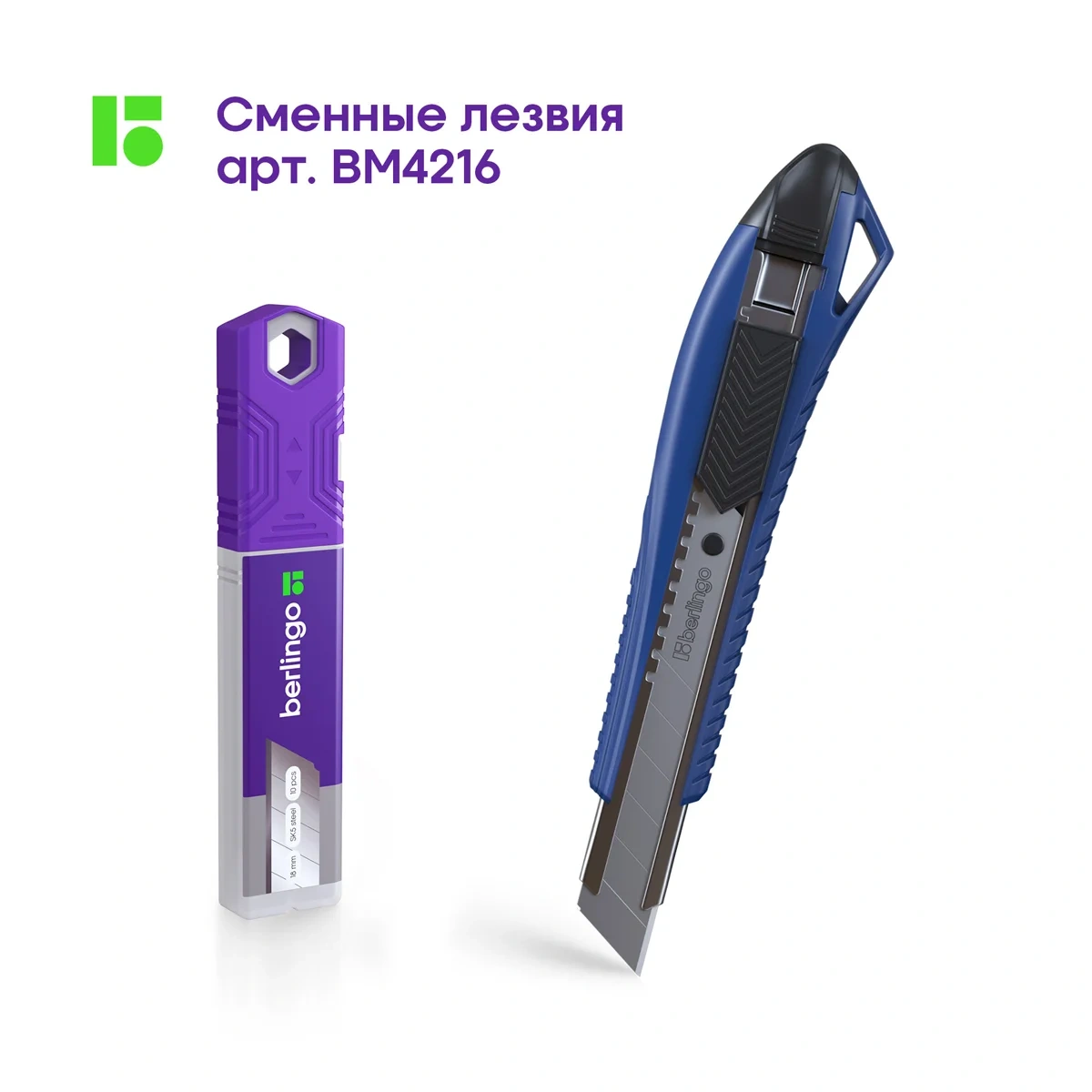 Нож канцелярский 18мм Berlingo 'Razzor 200', auto-lock, металл. направл., синий, европодвес
