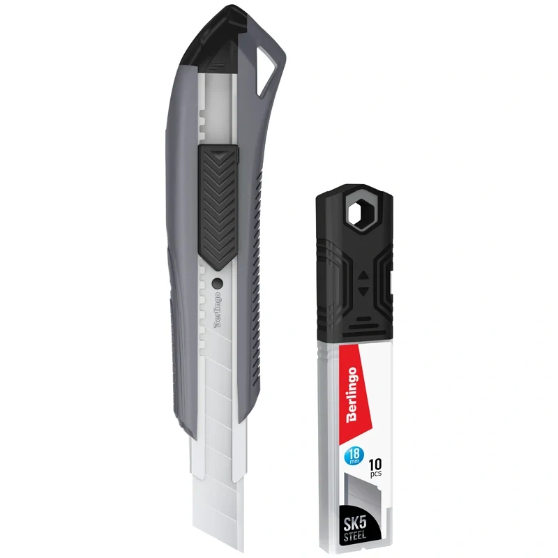 Нож канцелярский 18мм Berlingo 'Razzor 200', серый + лезвия сменные 10шт., блистер, европодвес