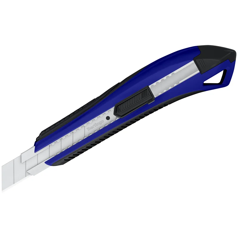 Нож канцелярский 18мм Berlingo 'Razzor 300', auto-lock, металл. направл., мягкие вставки, синий, евр
