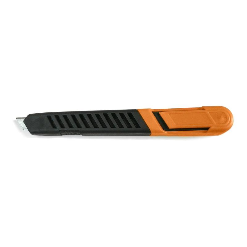 Канцелярский нож Альфа-мини 9 мм, является простым, удобным и доступным в использовании инструментом. Активно используется в канцелярии. Корпус ножа выполнен из пластика, система блокировки лезвий — автоматическая защелка. Выдвижное сменное лезвие, шириной 9 мм, можно установить на любую удобную длину, заменить в случае необходимости. Данная модель ножа оптимальна для резки бумаги, распечатывания корреспонденции и почты. Товар поставляется в оранжевом цвете, без упаковки.