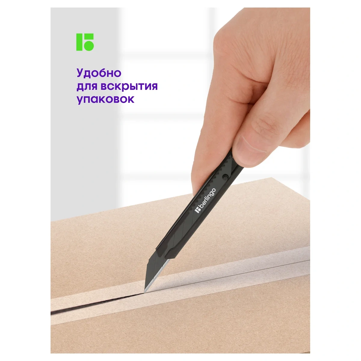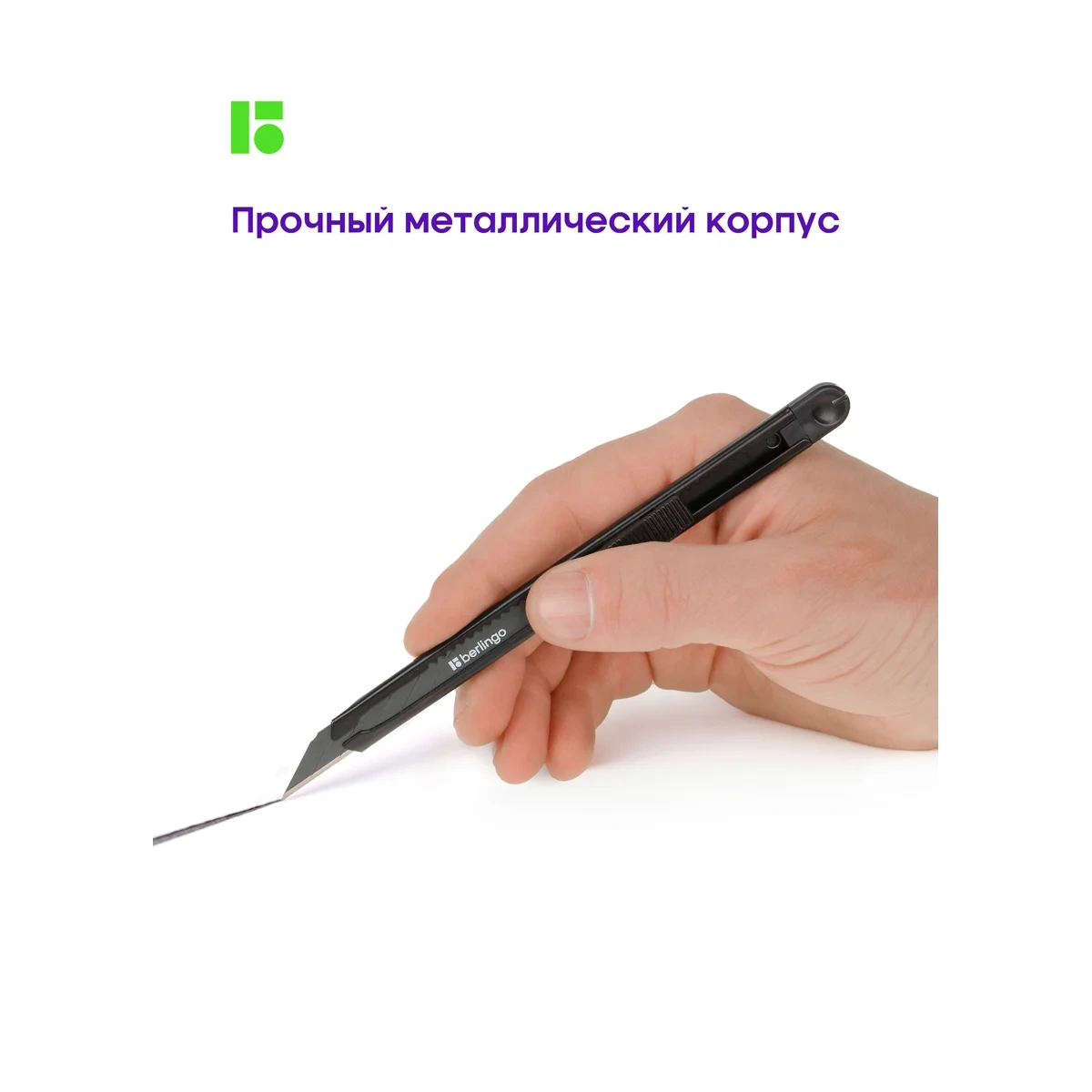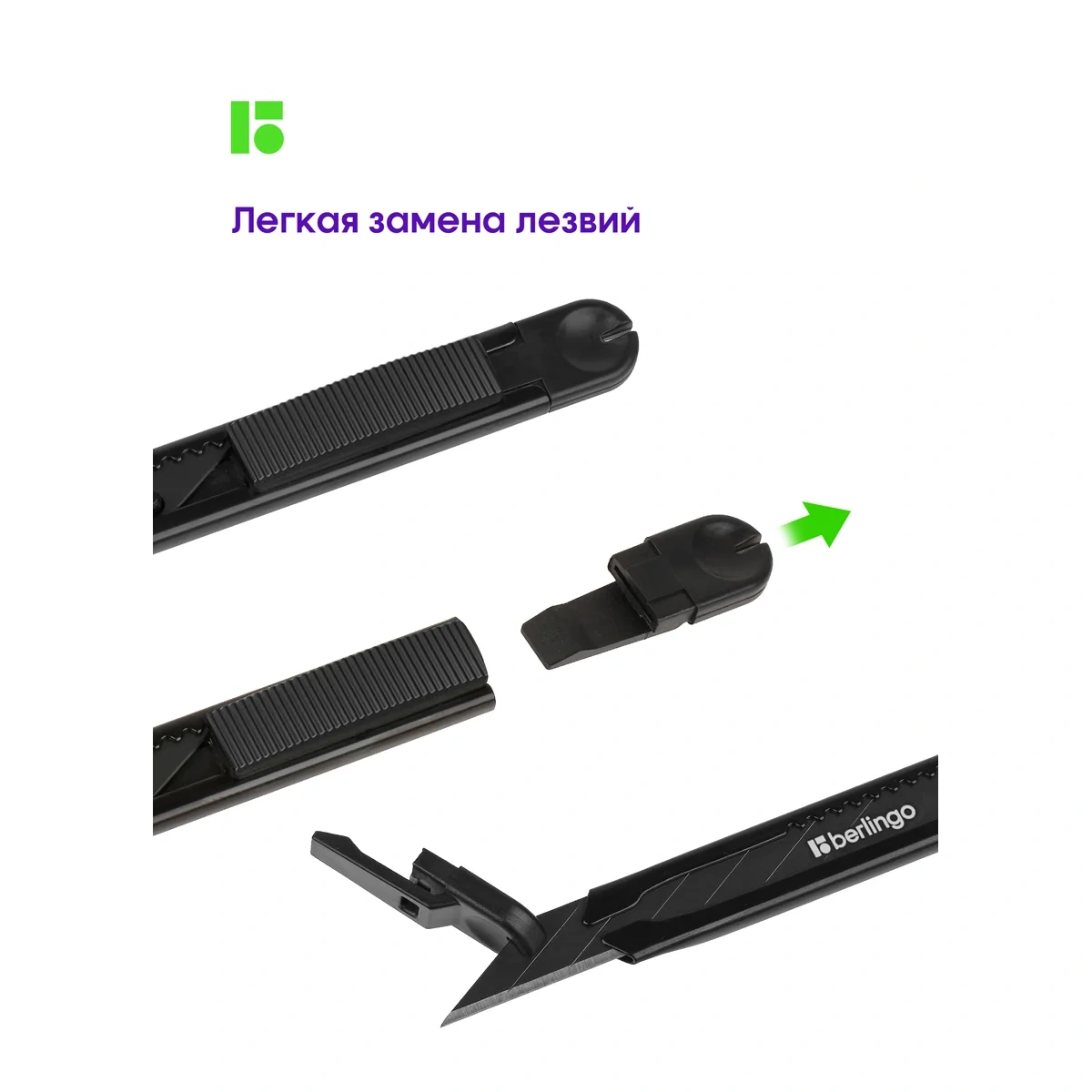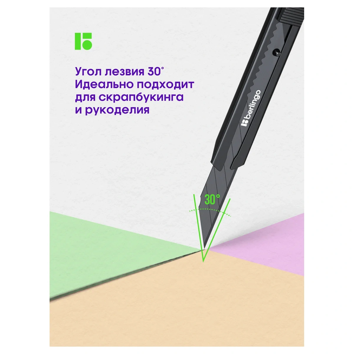 Нож канцелярский 9мм Berlingo 'Double black', auto-lock, металлический корпус, европодвес