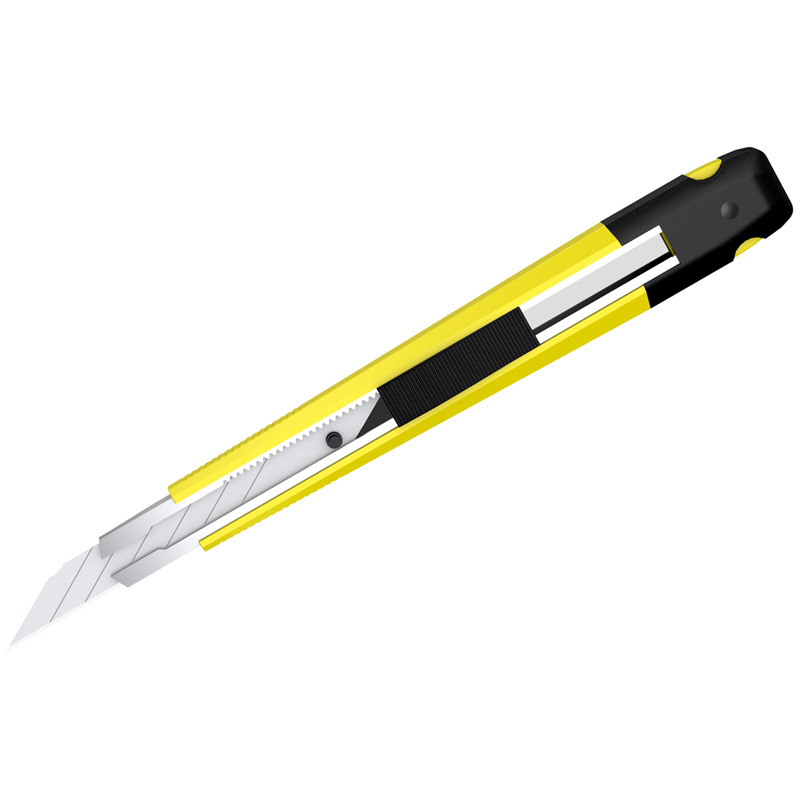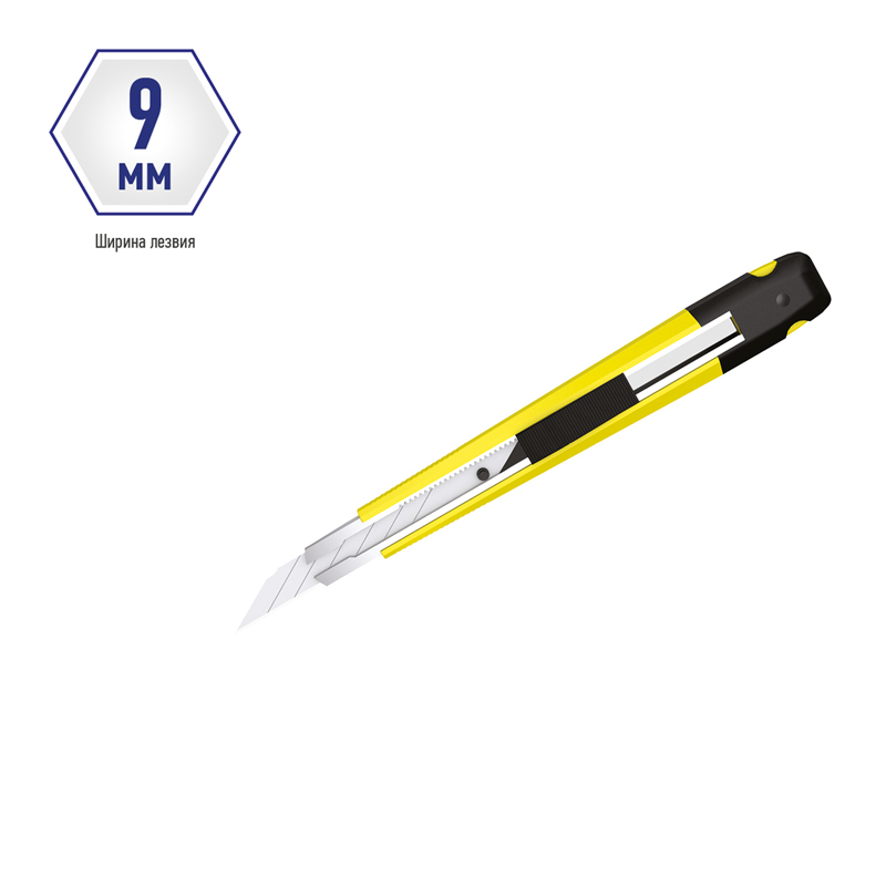 Серия 'Hyper'. Нож канцелярский с автоматической системой фиксации лезвия auto-lock. Корпус ножа выполнен из высококачественного ABS пластика. Цвет корпуса - желтый. Комплектуется износостойким лезвием из стали SK5 с углом 30°. Ширина лезвия - 9 мм. Оснащен металлическими направляющими для плавного движения лезвия. Индивидуальная упаковка - блистер с европодвесом.