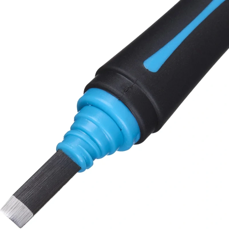 • Нож-скальпель с шириной лезвия 8,9 мм в корпусе из ударопрочного АВS-пластика со вставками из термопластичного каучука (TPR).