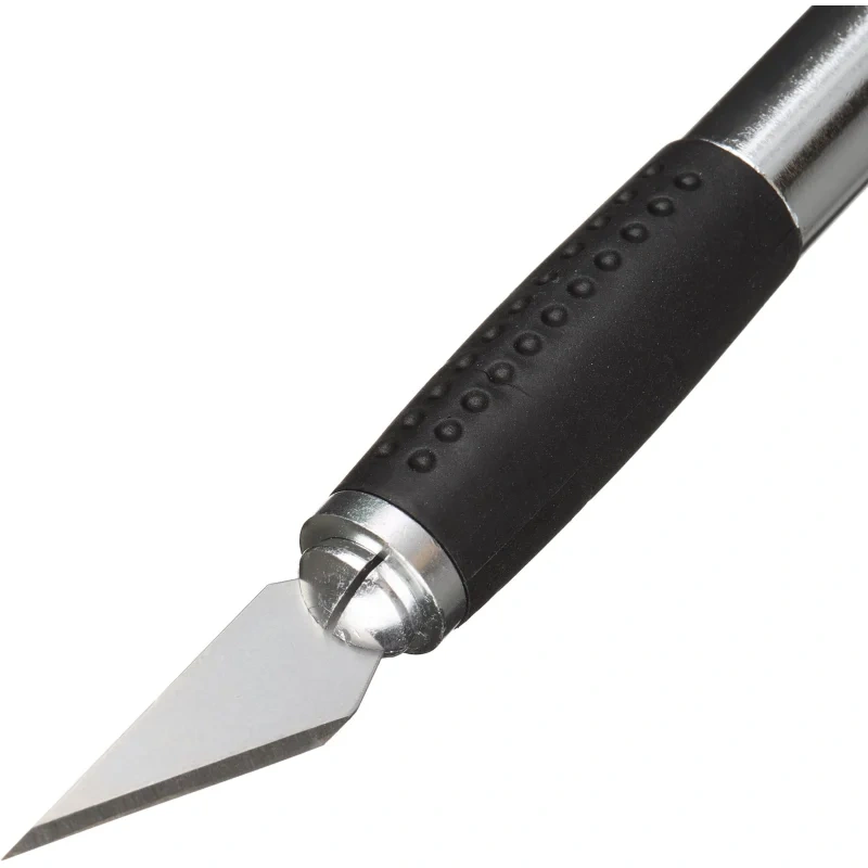 • Нож-скальпель с шириной лезвия 5,9мм в алюминиевом корпусе со вставкой из термопластичного каучука (TPR).