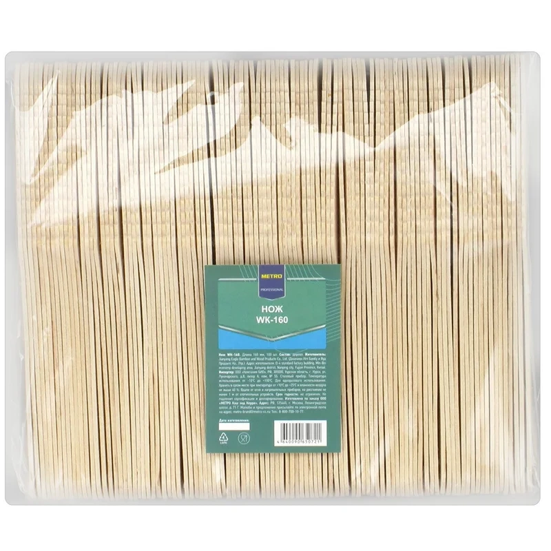 Нож одноразовый Диапазон деревянный, 16см, 100шт/уп