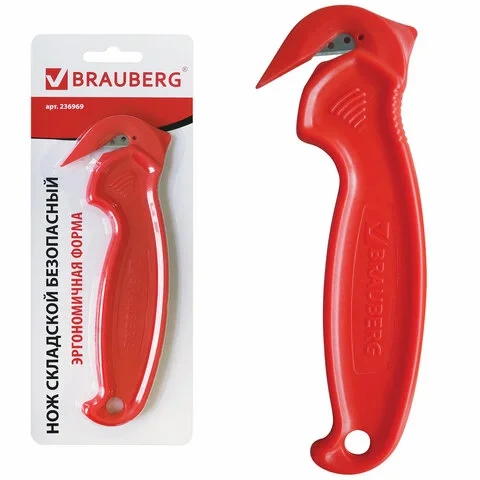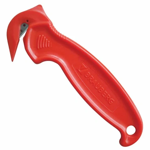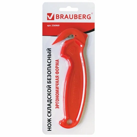 Нож складской безопасный BRAUBERG 'Logistic', для вскрытия упаковочных материалов, красный, блистер,