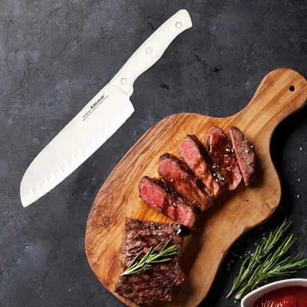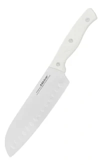 Нож повара Attribute Antique, 18 см подходит для нарезки и шинковки продуктов. Лезвие ножа изготовлено из экологически чистой нержавеющей стали, которая обладает высокими антикоррозийными свойствами. Особая заточка и широкое лезвие позволяют качественно и тонко нарезать продукты. Форма ножа делает его подходящим для быстрой нарезки зелени, мяса, овощей. Нож сантоку прекрасно сбалансирован, имеет эргономичную ручку, которая удобно лежит в руке. Удобная ручка из прочного пластика зафиксирована дополнительными болтами.
