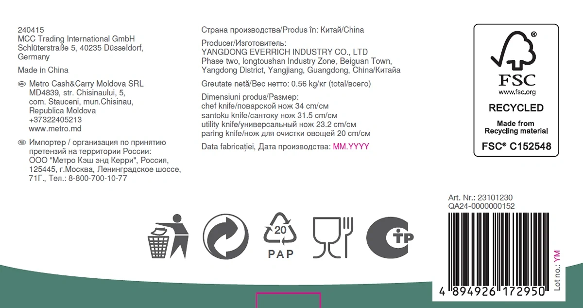 METRO PROFESSIONAL Нож поварской Uni, 20см