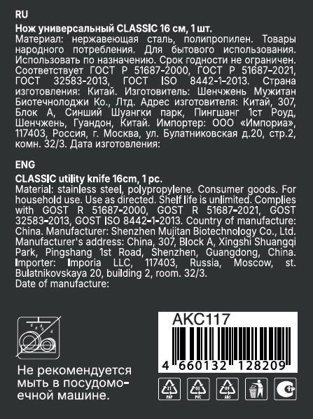 Нож универсальный Attribute Classic, 16см