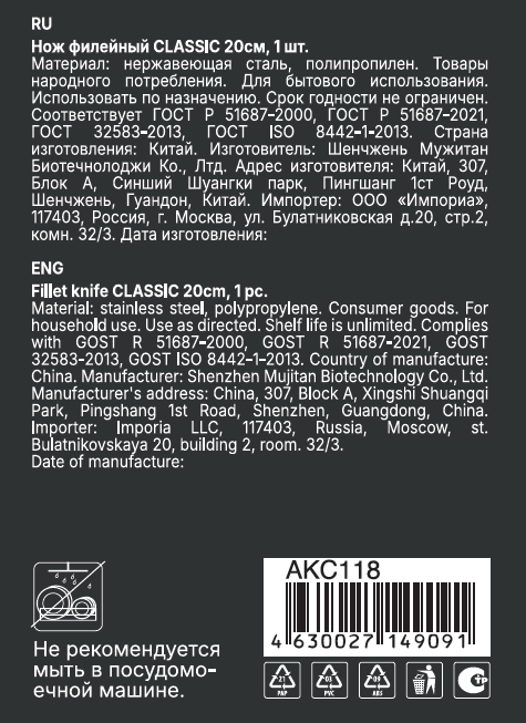 Нож филейный Attribute Classic, 20см