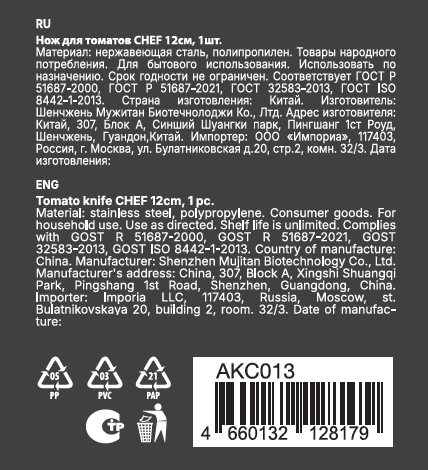 Нож для томатов Attribute Chef, 12см