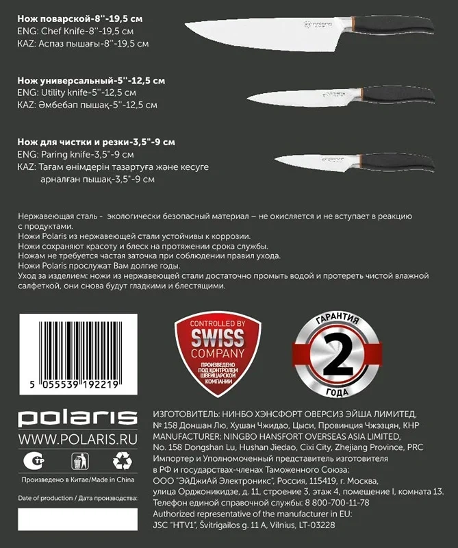 Набор ножей Polaris Verde 2шт и овощечистка