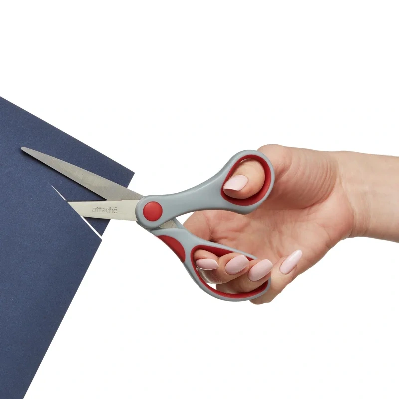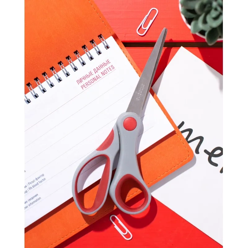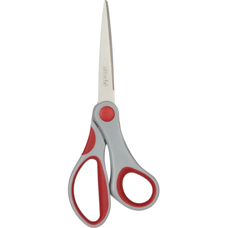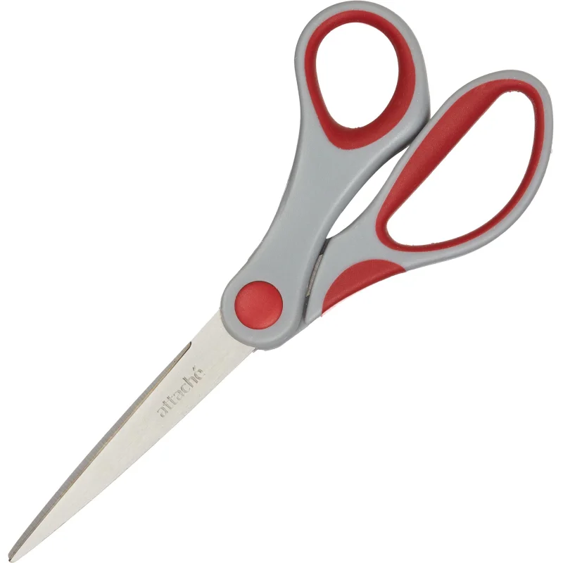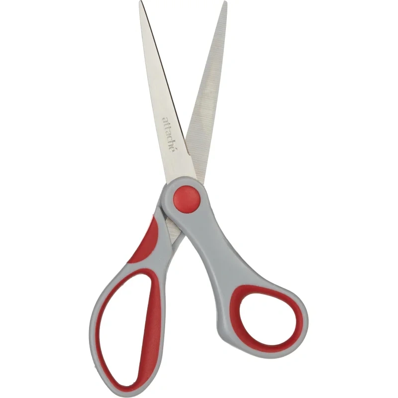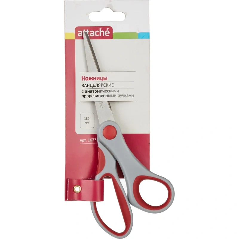 Канцелярские ножницы (офисные) Attache, выполненные из нержавеющей стали. Прорезиненные манжеты предотвращают скольжение пальцев.