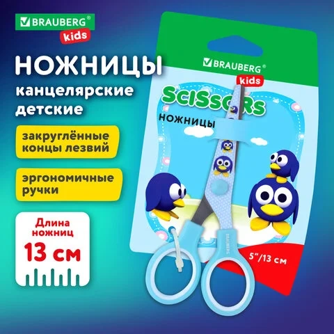 Ножницы детские Brauberg Пингвин 13см, голубые