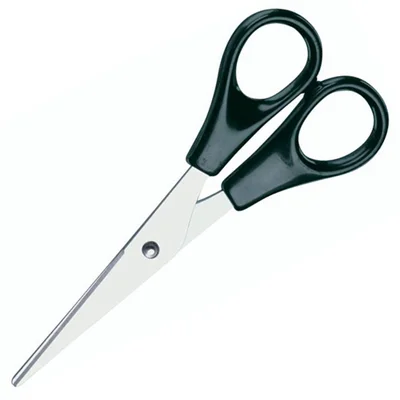 Ножницы для резки бумаги и текстиля, сделаны из нержавеющей стали с эргономичной пластиковой ручкой и закругленными концами лезвия.