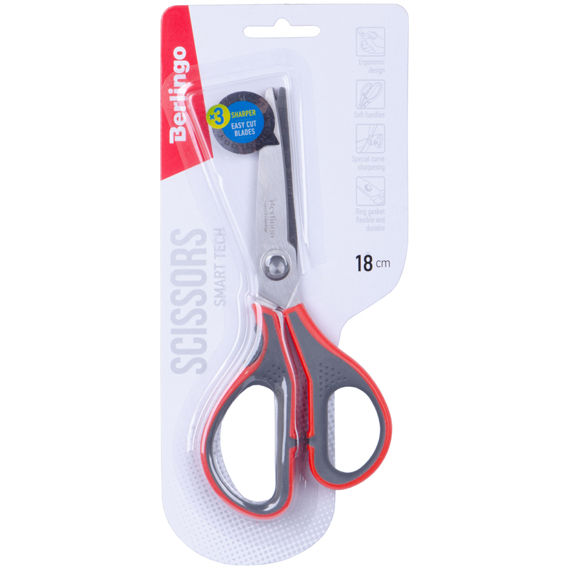 Ножницы Berlingo 'Smart tech', 18см, красные, европодвес