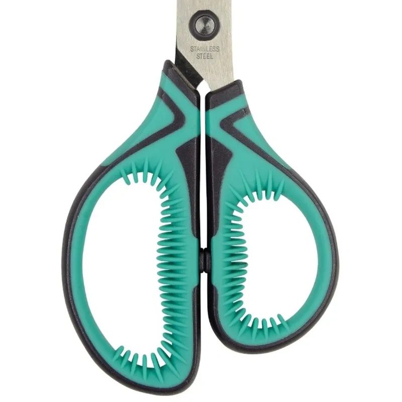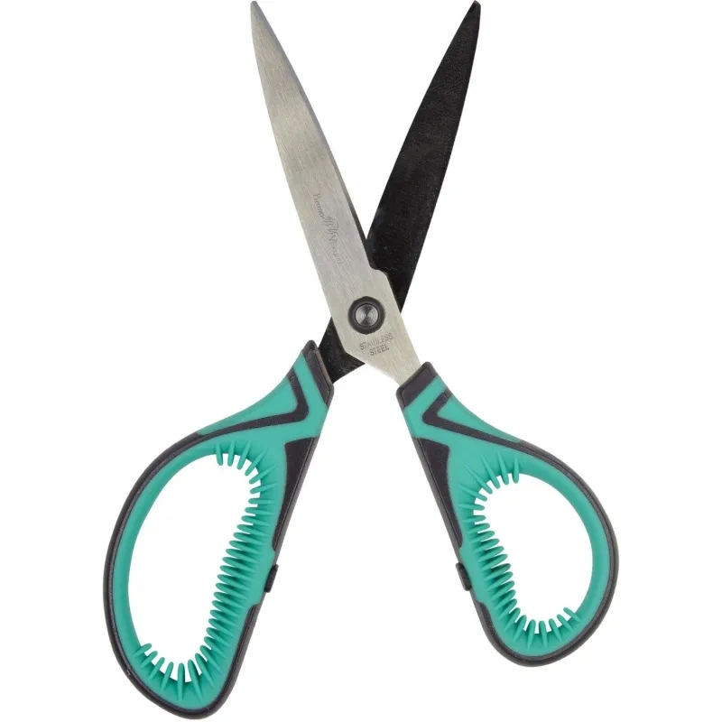 Длинные ножницы для бытового использования из серии «ProfyCut». Размер ножниц 21 см. Выполнены из нержавеющей стали, пластика и мягкой резины. Лезвия толщиной 2 мм остро заточены, с плавным ходом, легко режут бумагу, толстый картон, ткани. Эргономичная форма ручек помогает удобно разместить ножницы в руке. Мягкое прорезиненное покрытие не дает пальцам соскальзывать в процессе работы, позволяя сохранять четкий контроль за линией разреза. Такие ножницы безопасно взять с собой, они не повредят сумку и содержимое благодаря защитному футляру. Упакованы в картонную подложку.