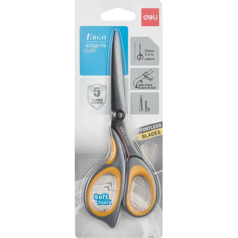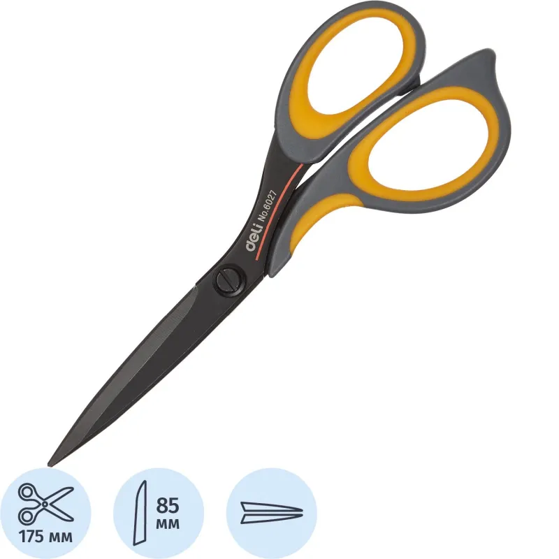 Ножницы Deli 175мм,прорезиненные ручки,лезвия из нержавеющей стали,блистер